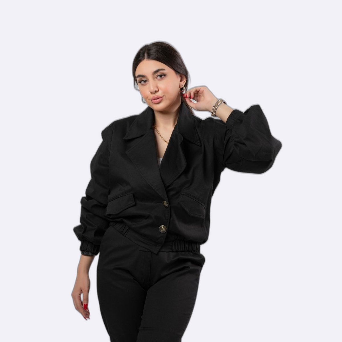 جاكيت بومبر بتصميم كاجوال يضم جيوباً أمامية واسعة وأطراف مطاطية عند الأكمام والخصر لراحة مثالية