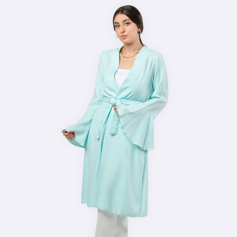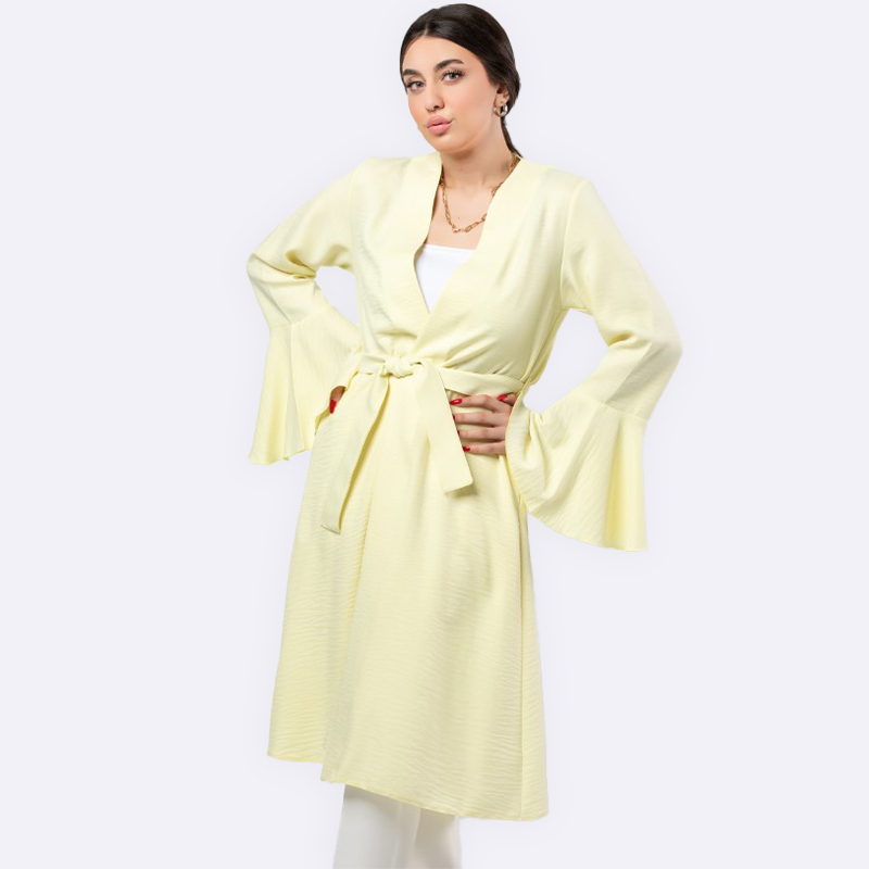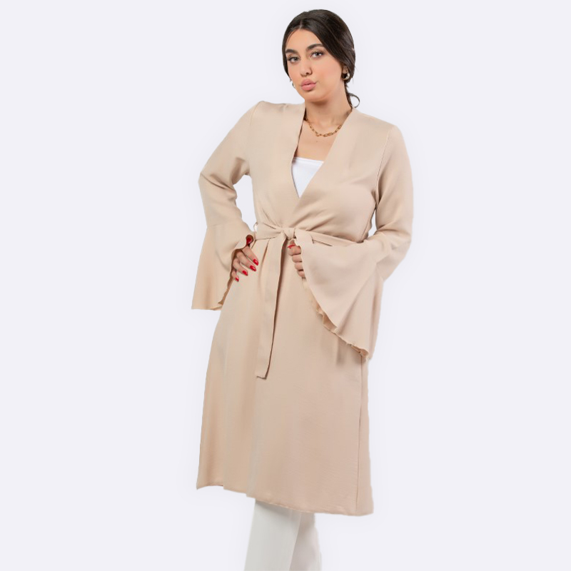 جاكيت طويل مفتوح مزين بنقشات البايزلي المتداخلة وأكمام واسعة تضفي لمسة من الأناقة التقليدية العصرية