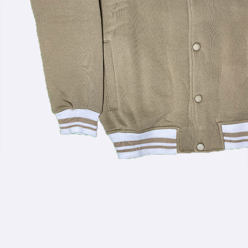 جاكيت رجالي بتصميم جامعي عصري مع أزرار أمامية ولمسات مخططة على الياقة والأكمام، يمنح إطلالة شبابية مميّزة. مناسب للاستخدام اليومي والإطلالات الكاجوال