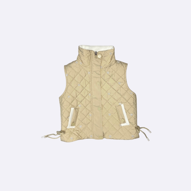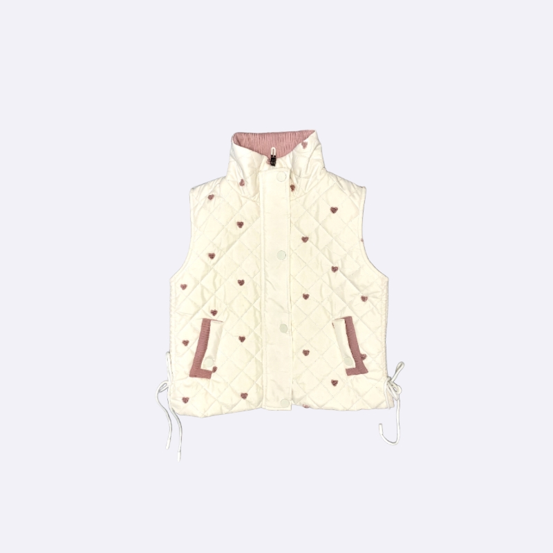 Quilted Heart Embroidered Vest with Drawstring Detail