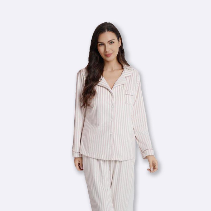 استمتعي بنوم هانئ ومريح مع طقم البيجامة النسائية الأنيق. تصميم عصري ومريح يمنحك إطلالة جذابة أثناء الاسترخاء في المنزل.