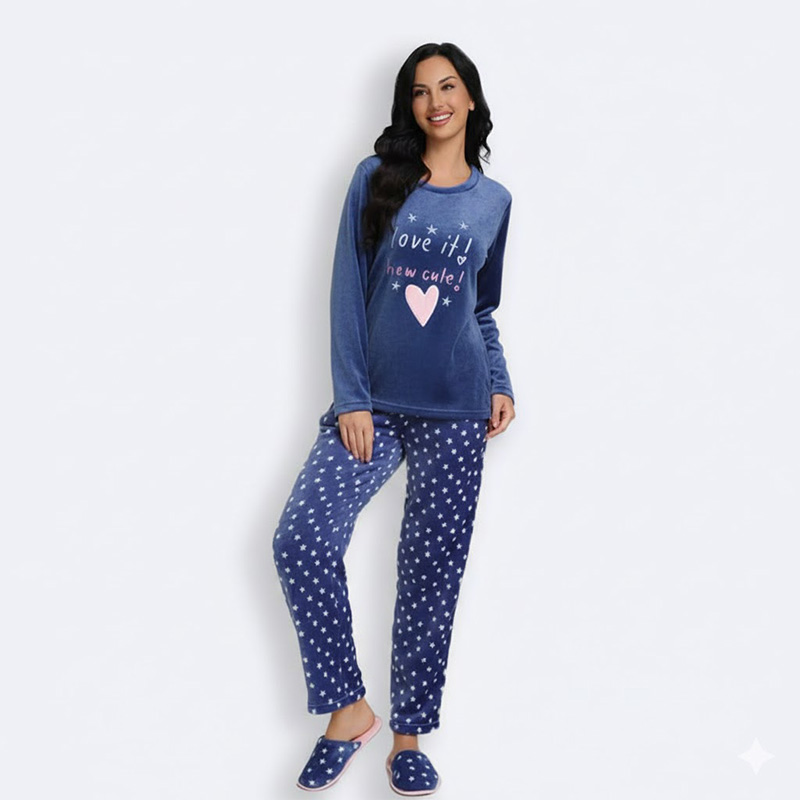استمتعي بنوم هانئ ومريح مع طقم البيجامة النسائي بتصميم النجوم. مصنوع من خامات ناعمة ومريحة، مثالي للاسترخاء في المنزل.