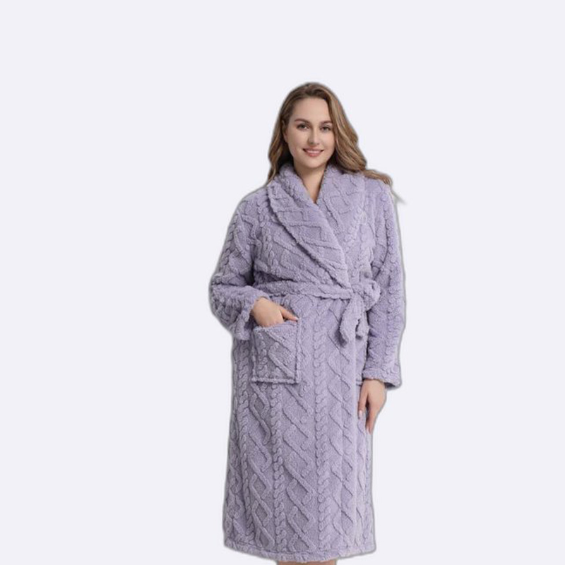 استرخي بأناقة مع هذا الروب المنزلي الفاخر. مصنوع من نسيج ناعم ومريح بنقشة كابل أنيقة، يمنحك الدفء والراحة المثالية.