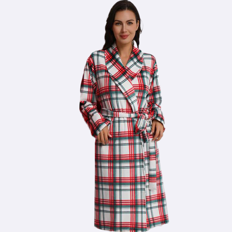 استمتعي بأجواء العطلات مع هذا الروب المريح بنقشة المربعات. مثالي للاسترخاء في المنزل أو كهدية دافئة ومميزة.