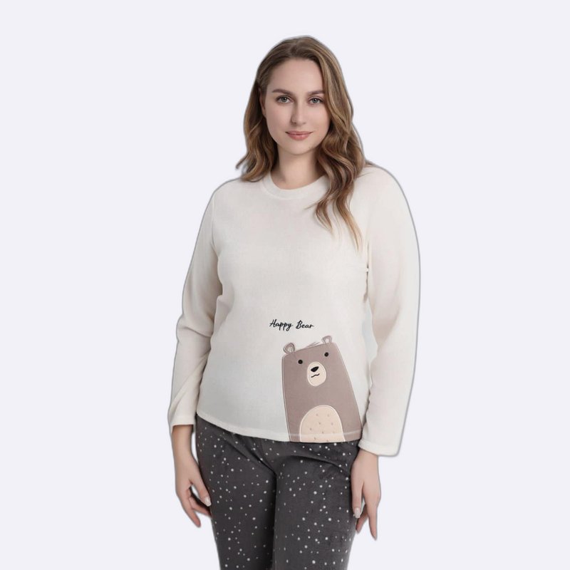 استمتعي بنوم هانئ ومريح مع طقم البيجامة هذا بتصميم الدب اللطيف. مصنوع من خامات ناعمة ومريحة لتنعمي بالدفء والاسترخاء طوال الليل.