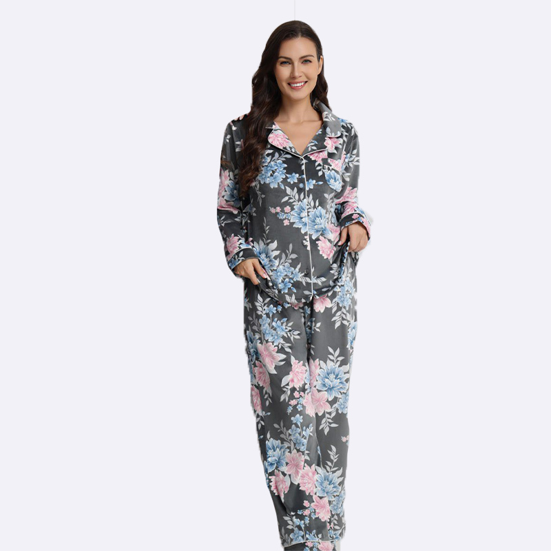 انعمي بنوم هانئ ومريح مع طقم البيجامة النسائي الأنيق بنقشة الزهور. تصميم عصري ومريح يمنحك إطلالة جذابة في المنزل.