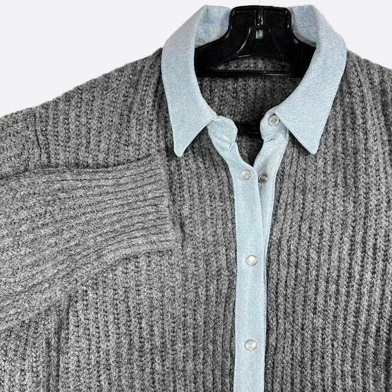 Ribbed Knit Shirt Collar Cardigan