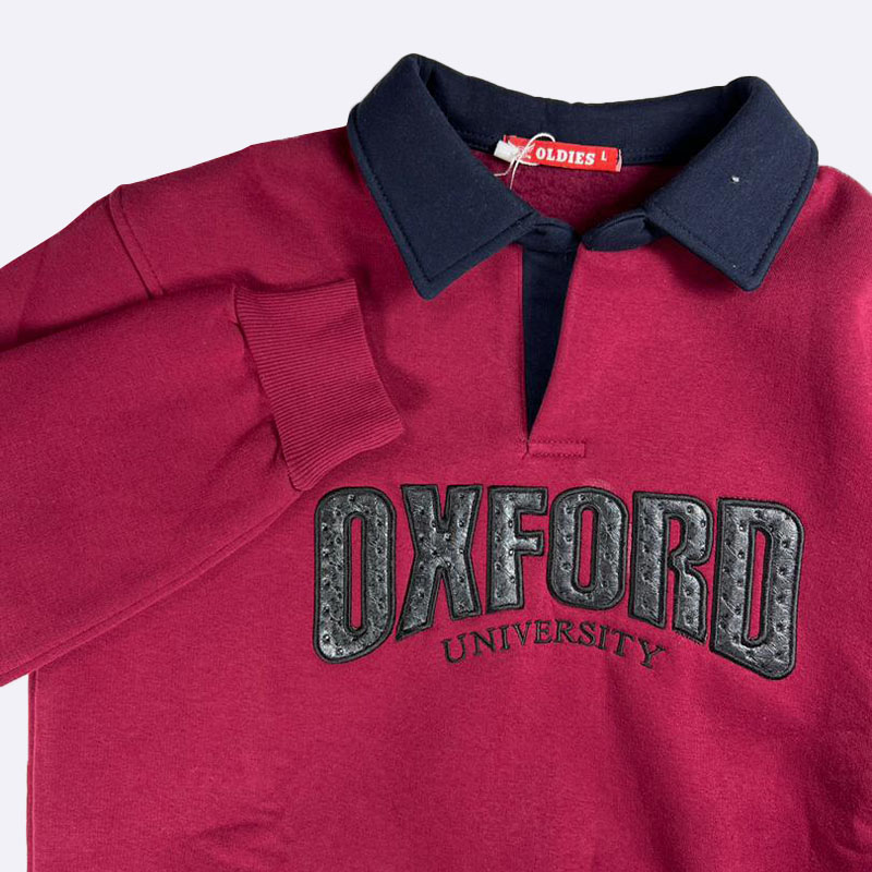 أضف لمسة كلاسيكية إلى خزانة ملابسك مع هذا السويت شيرت المستوحى من جامعة أكسفورد. تصميم بياقة بولو مريح وأنيق، مثالي لإطلالة يومية مميزة.