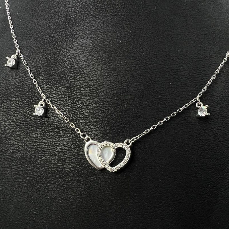 عبّري عن حبك وأناقتك مع هذه القلادة الفضية الرقيقة. تصميم القلبين المتشابكين يضفي لمسة رومانسية على إطلالتك.