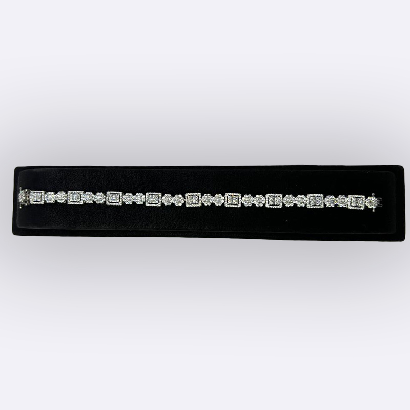 أضيفي لمسة من الرقي إلى إطلالتك مع هذا السوار الأنيق المرصع بالألماس. تصميم فريد يجعله مثالياً للمناسبات الخاصة والسهرات.