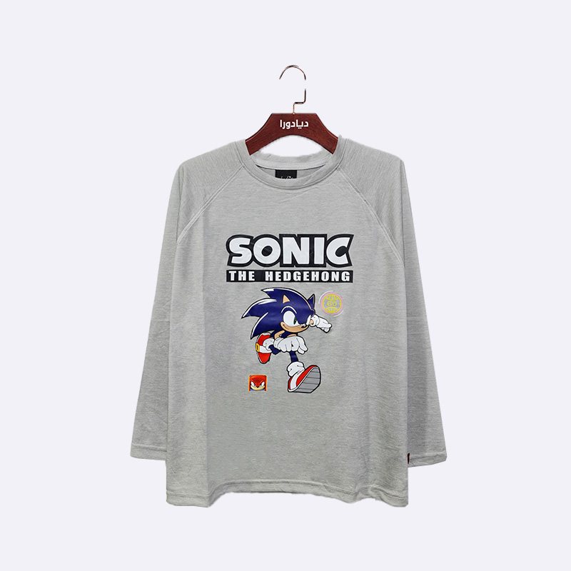 كنزة ولادية بأكمام طويلة باللون الرمادي الفاتح. تتميز بطباعة كبيرة لشخصية "سونيك القنفذ" مع شعار اللعبة.
