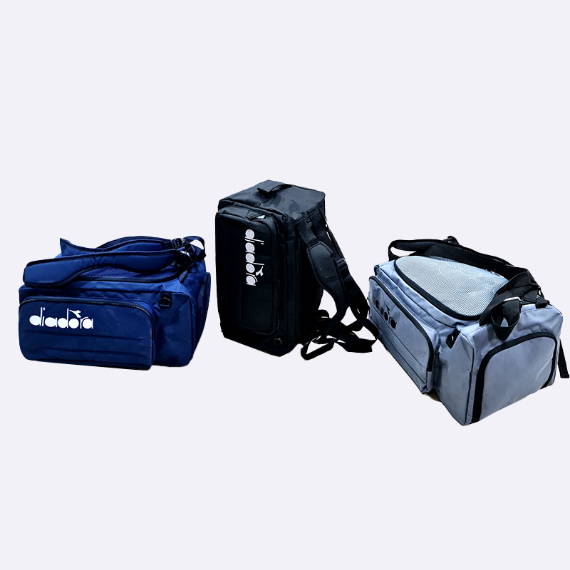 مجموعة من الحقائب الرياضية المصممة لحمل المعدات والملابس. تأتي بتصاميم وألوان مختلفة (أزرق، أسود، ورمادي). تتميز بمساحتها الكبيرة وأحزمتها المريحة للحمل باليد أو على الكتف، مما يجعلها مثالية للنوادي الرياضية والسفر القصير.