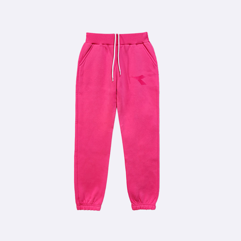بنطلون رياضي (jogger) للبنات باللون الوردي الزاهي. يتميز بتصميم مريح وعصري، مع خصر مطاطي ورباط أبيض للتحكم في المقاس، وأساور عند الكاحل. مزود بجيبين جانبين وشعار صغير مطبوع على الجهة الأمامية. مثالي للرياضة أو للارتداء اليومي.