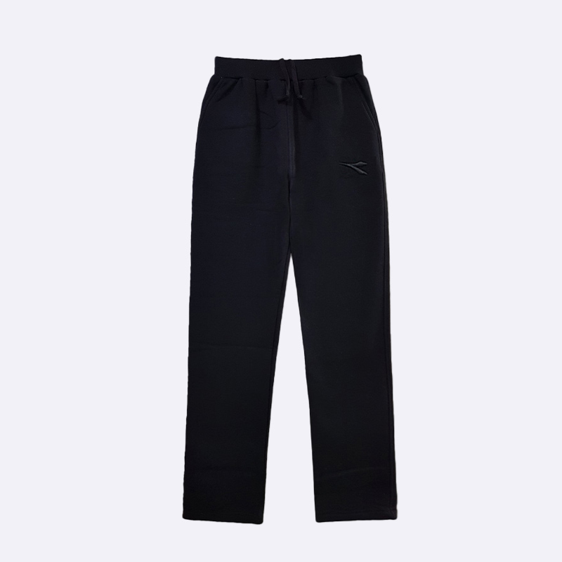 بنطلون بناتي دافئ بقصة مستقيمة، يتميز بخصر مرن مع أربطة شد وشعار مطرز بشكل بسيط على الجيب.