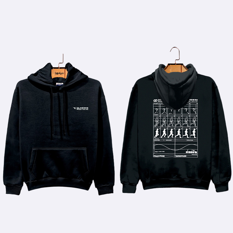 سويت شيرت مريح بـغطاء للرأس وجيب كانغارو أمامي، يتميز بتصميم عصري مع طبعة بيانية تفصيلية للحركة الرياضية على الظهر وشعار صغير على الصدر.