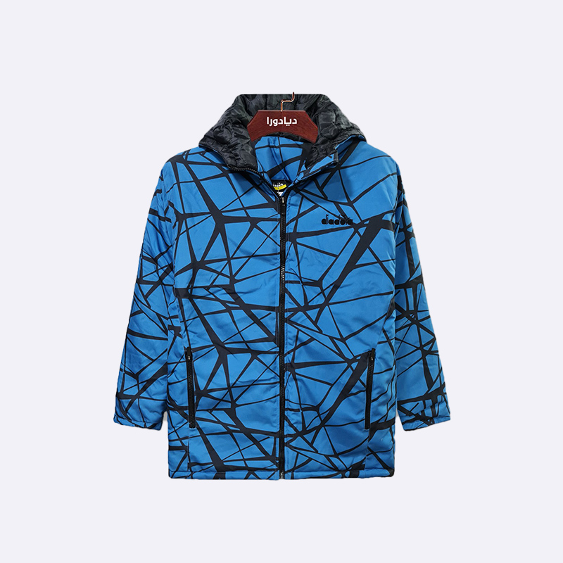 جاكيت مبطن بغطاء رأس وسحاب أمامي، يتميز بطبعة عصرية ومناسب للأجواء الباردة والممطرة.