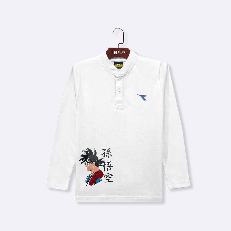 تيشيرت قطني بأكمام طويلة وأزرار عند الرقبة، يتميز بطبعة شخصية كرتونية على الصدر.