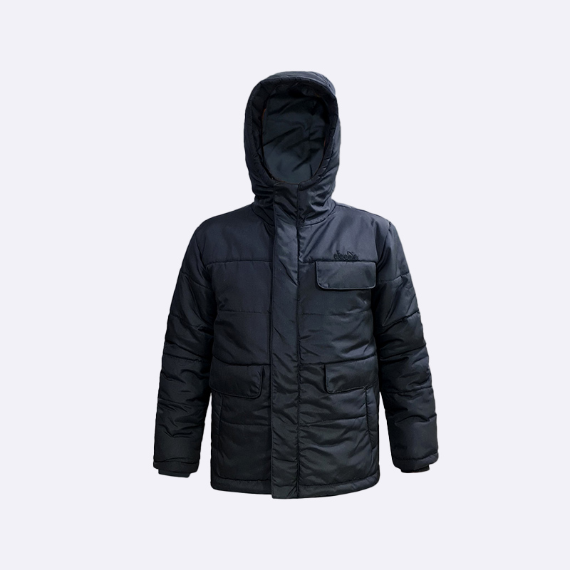 جاكيت شتوي رجالي مبطن ومنفوخ (Puffer) بتصميم باركا، يتميز بسحاب كامل وطبقة خارجية مقاومة للعوامل الجوية. يحتوي على غطاء رأس متصل وجيوب كبيرة بغطاء قلاب على الصدر والخصر. يوفر أقصى درجات الدفء والحماية من البرد.