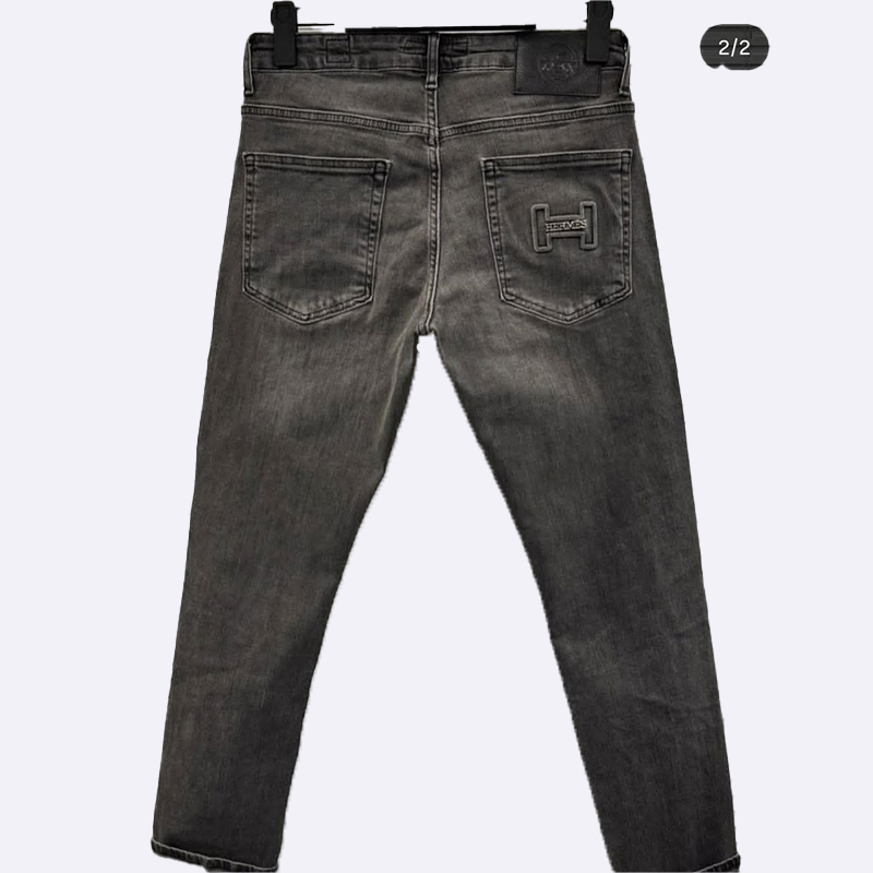 بنطلون من الدنيم بتفاصيل شعار مطرز وقصة كلاسيكية مريحة