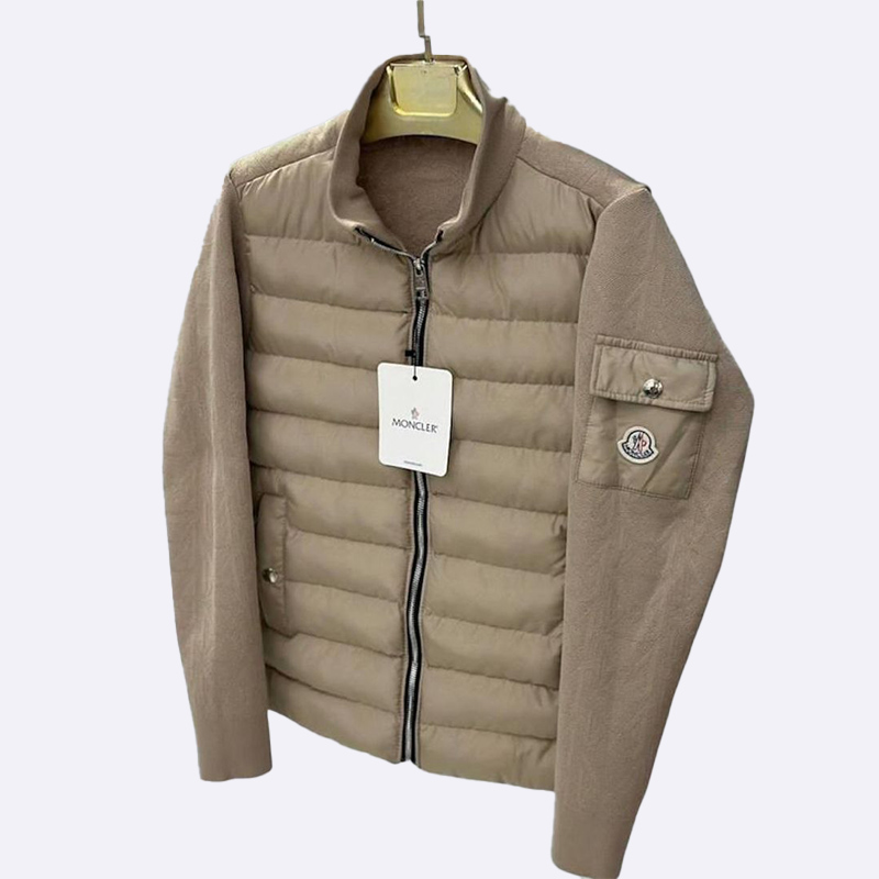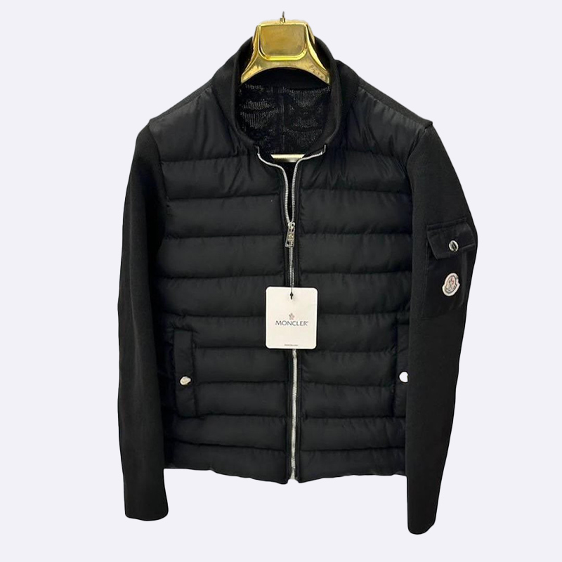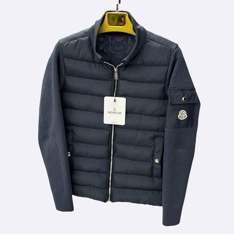 جاكيت هجين بسحاب أمامي وجزء مبطن وأكمام محبوكة وجيب صغير بشعار العلامة على الذراع.