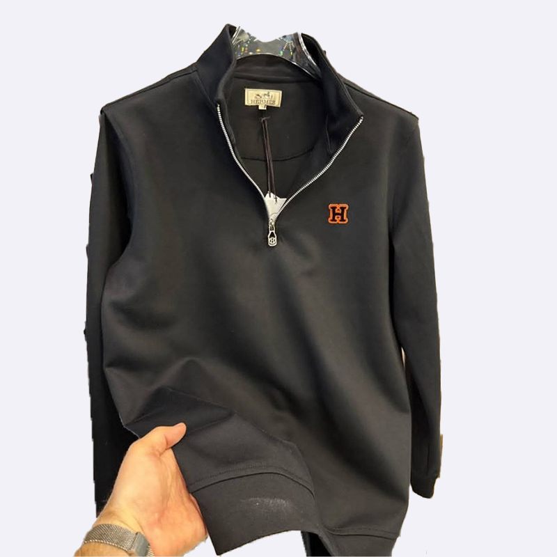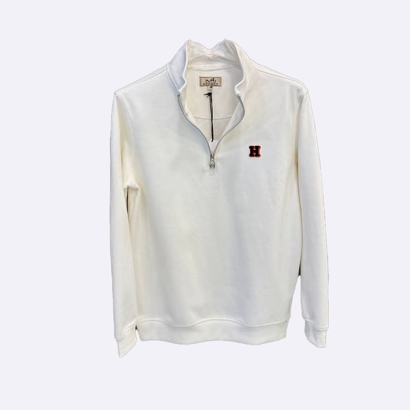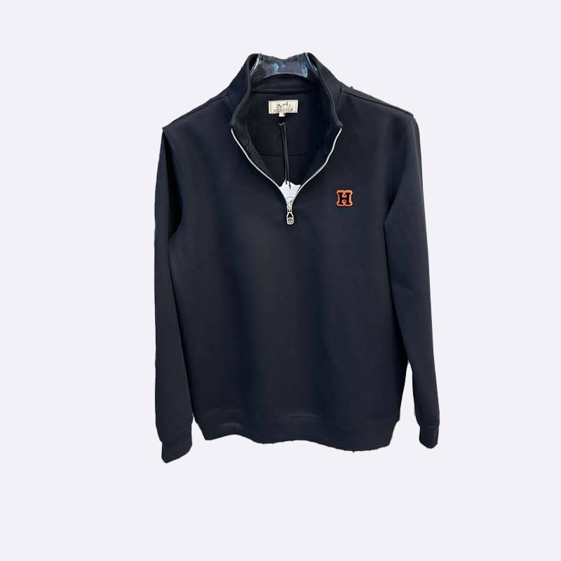 كنزة بأكمام طويلة وسحاب قصير عند الرقبة وتطريز شعار الحرف على الصدر.