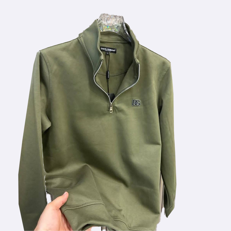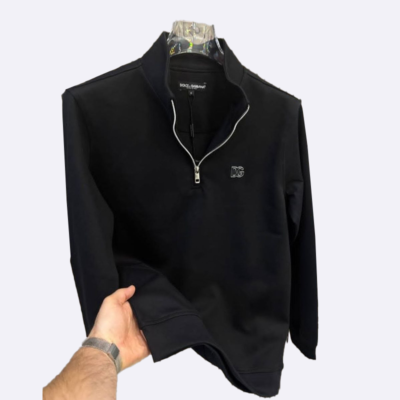 كنزة بأكمام طويلة وياقة عالية وسحاب قصير عند الرقبة وتطريز شعار العلامة على الصدر.