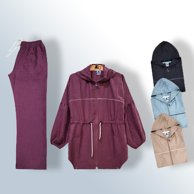 بنطلون رياضي مريح مصنوع من مزيج البوليستر والليكرا، يتميز بخصر مطاطي ونهايات أرجل ضيقة، متوفر بخيارات متعددة.
