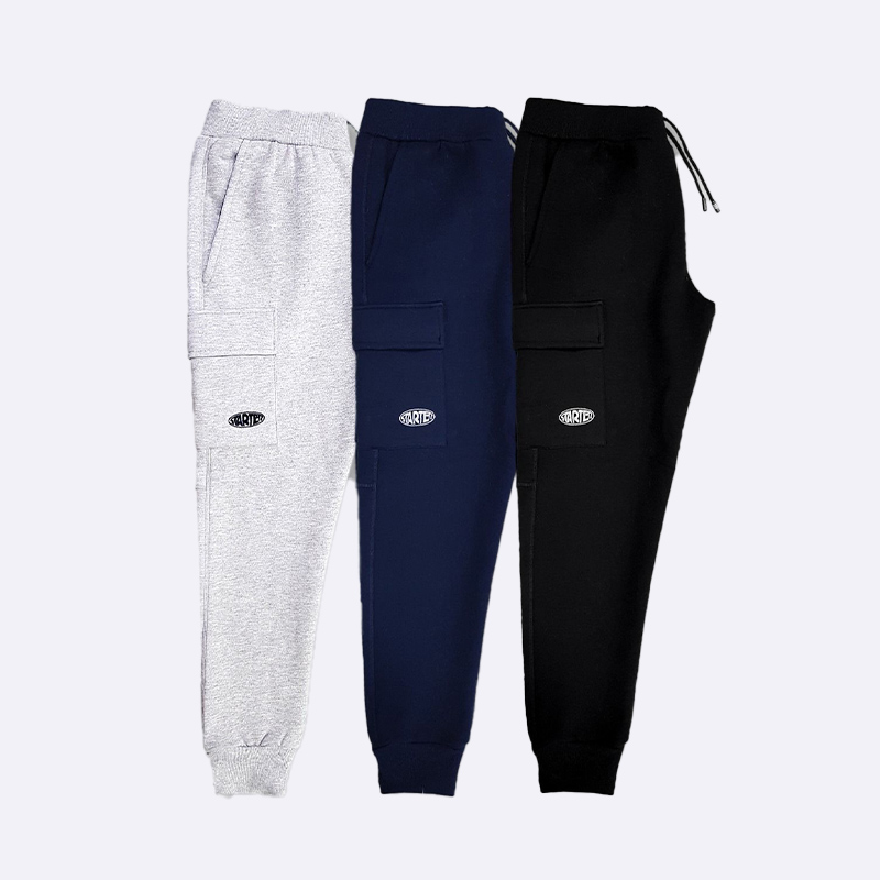 بنطلون رياضي (جوغر) مريح للرجال، يتميز بخصر مطاطي مزود برباط شد، وجيوب كبيرة على الجانبين (ستايل كارغو)، وأطراف سفلية مرنة، مع شعار مطبوع صغير على الجيب الجانبي، ومصنوع من خليط القطن والبوليستر.