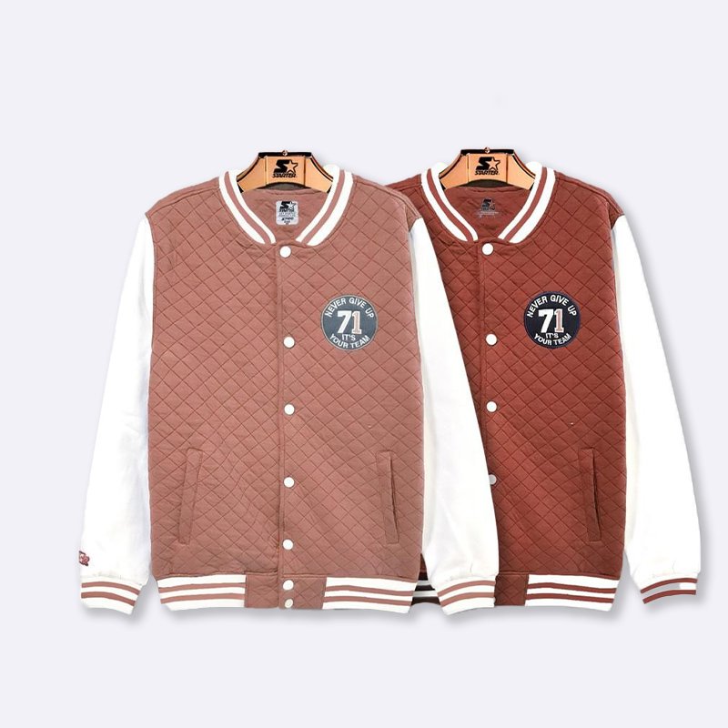 جاكيت رياضي أنيق مصنوع من مزيج قطني بنسبة 65% و35% بوليستر، يتميز بتصميم مبطن وأكمام متباينة تمنح مظهراً عصرياً ومريحاً.