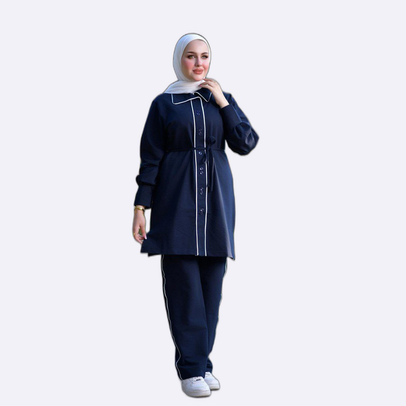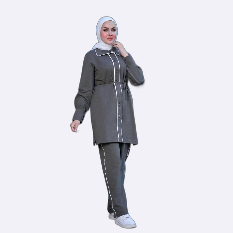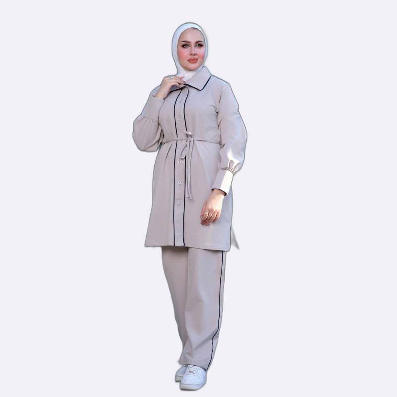 طقم مريح من قطعتين بتصميم متناسق يمنحك مظهرًا جاهزًا دون مجهود.