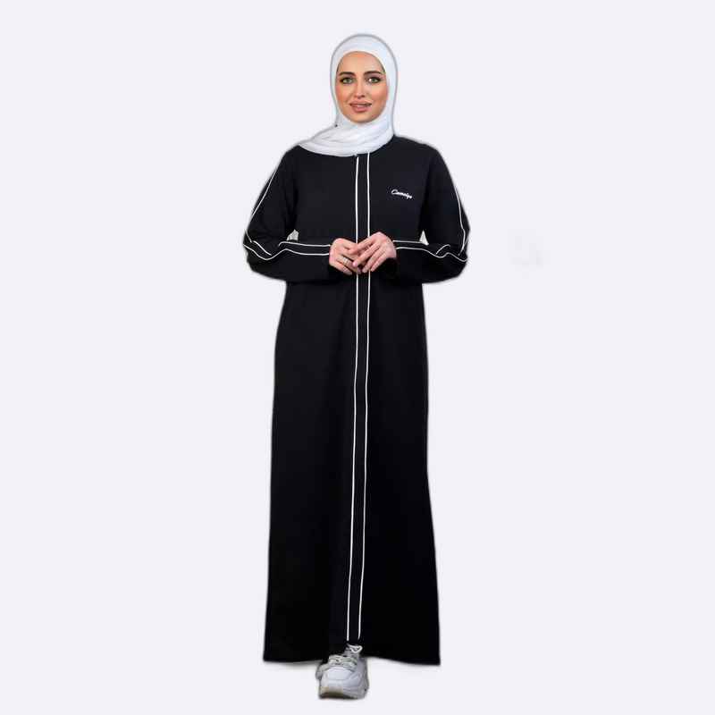 عباءة كحلية أنيقة، تتميز بجيوب جانبية وتطريز ذهبي على الأكمام، مما يمنحها لمسة من الفخامة والرقي، وتناسب الإطلالات اليومية والخاصة.
