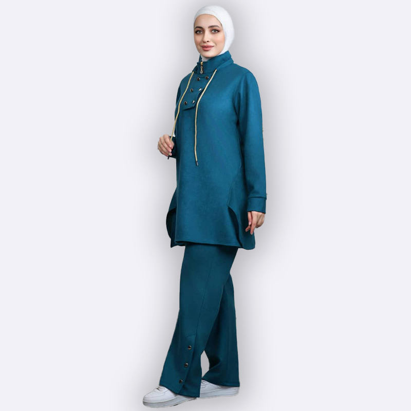 طقم مريح بتصميم عملي مناسب للمنزل والخروج ويتميز بخامة فليس ناعمة توفر دفئًا وراحة طوال اليوم.