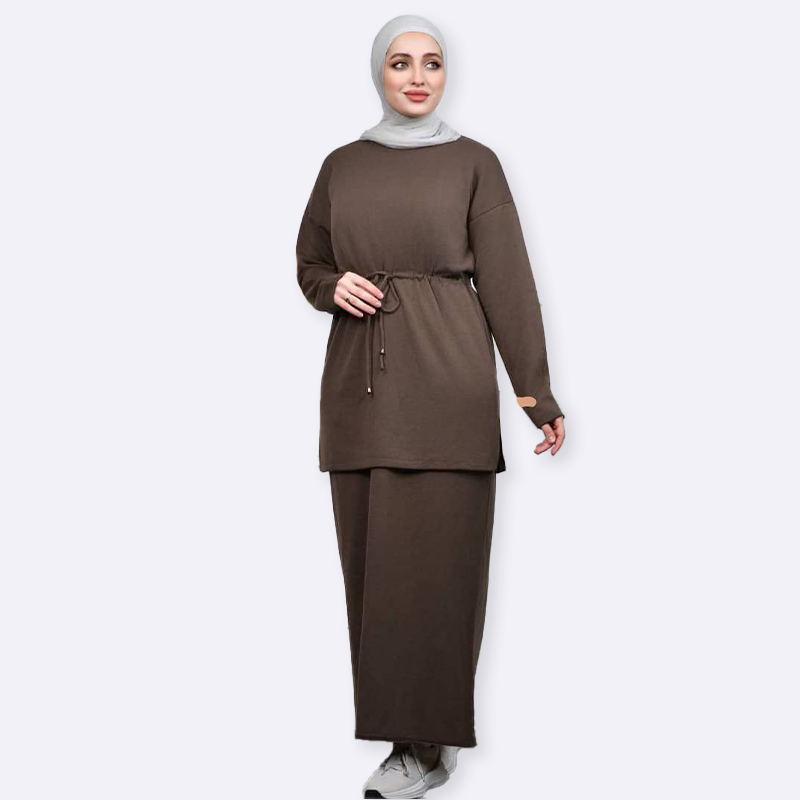 استمتعي بأناقة مريحة مع هذا الطقم المحبوك الأنيق. تصميم عصري ومحتشم يمنحك إطلالة أنيقة وعملية في آن واحد.