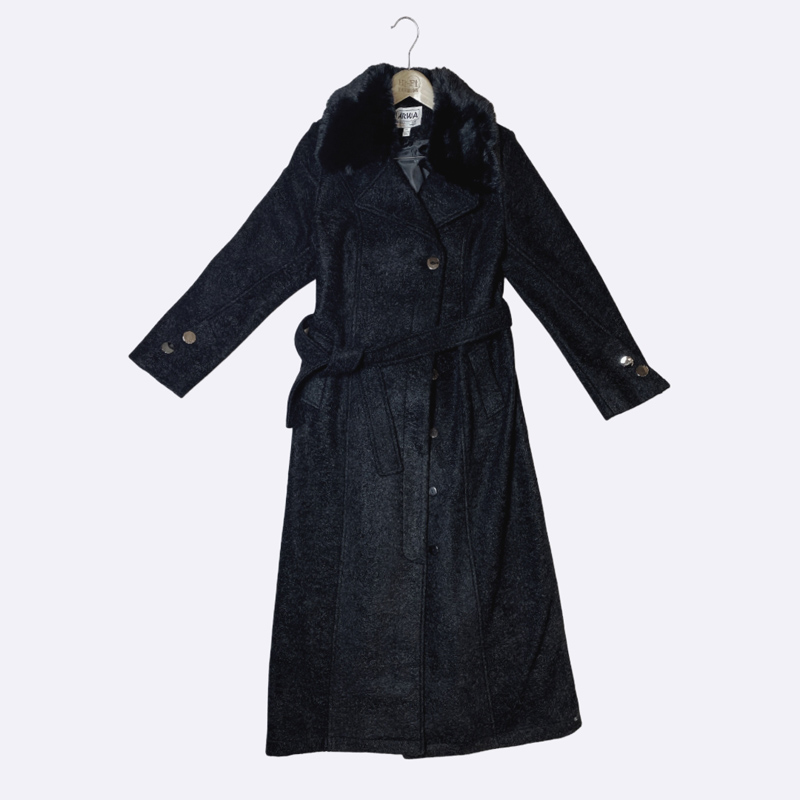 Women's Long Cashmere/Wool Coat with Fur Collar
