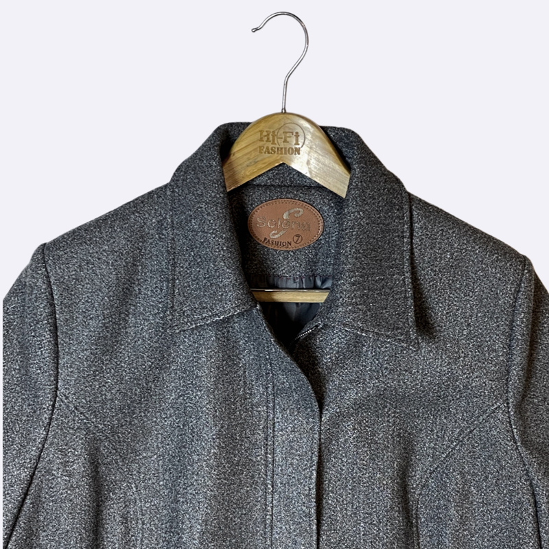 Women's Long Wool/Tweed Coat (Herringbone/Gray)