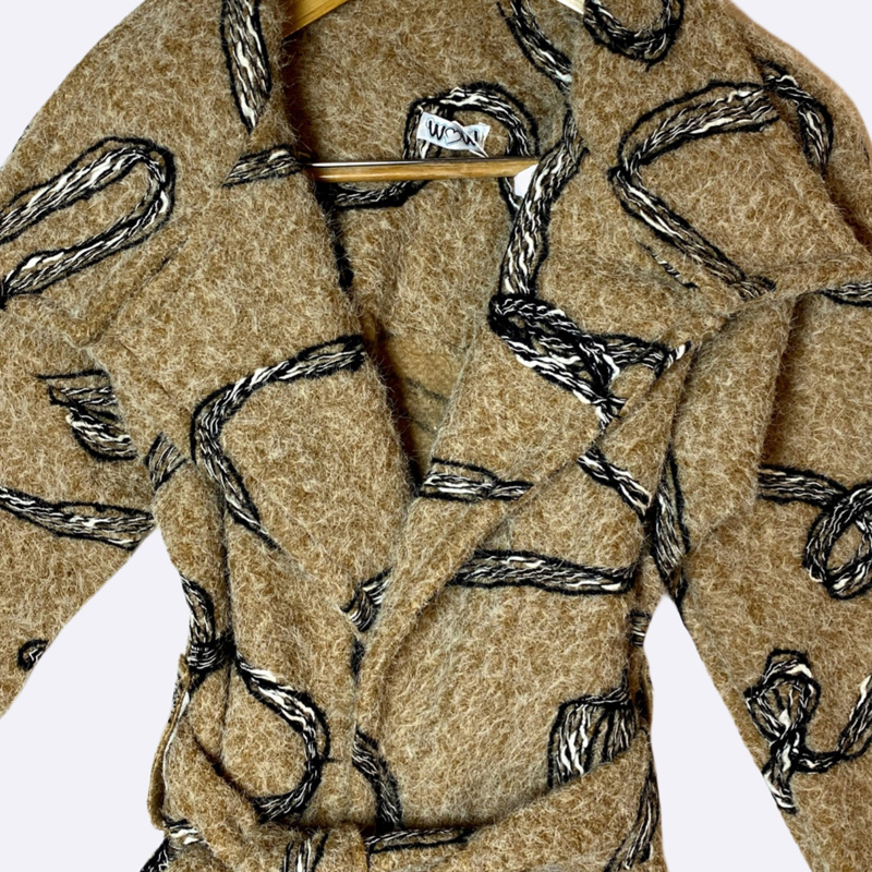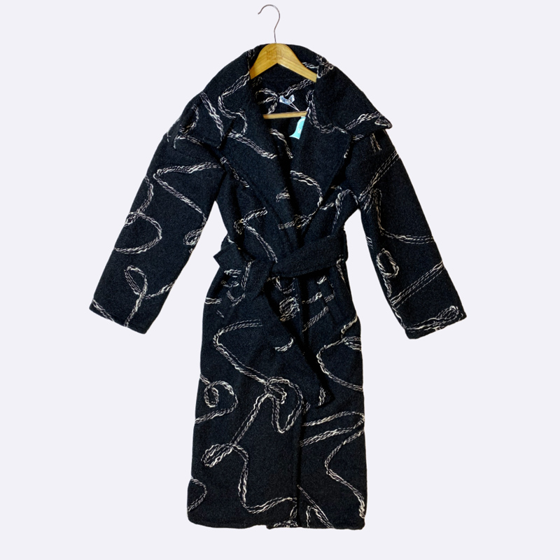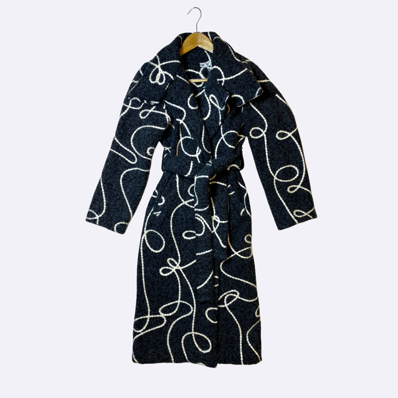 Women's Long Wool/Knit Coat with Rope/Pattern Prin
