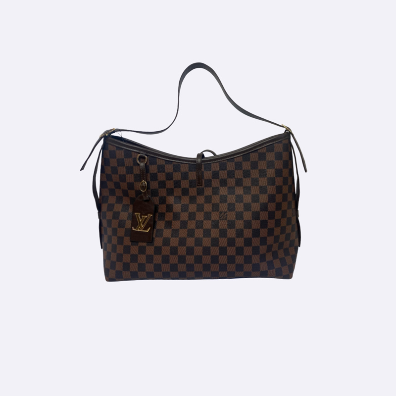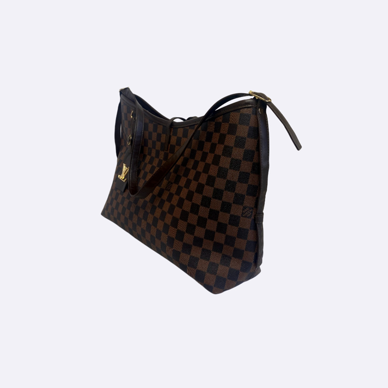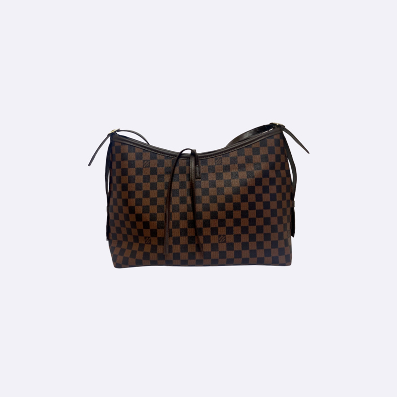 حقيبة كتف نسائية بتصميم هلالي ونقشة المربعات الكلاسيكية (Damier Ebene) مع تعليقة شعار LV.