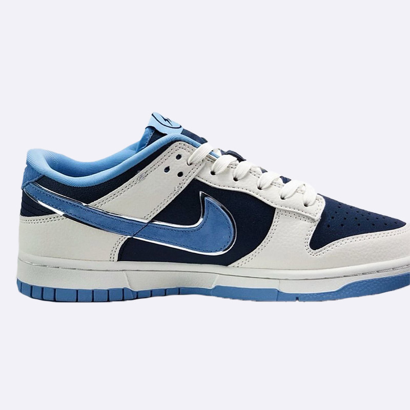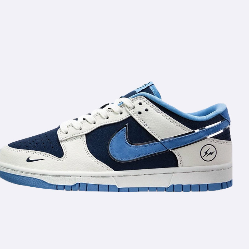 حذاء رياضي مميز من نايكي دانك لو، مصمم ضمن تعاون حصري مع فراجمنت ديزاين. يتميز بتصميمه الكلاسيكي وقصته المريحة، مما يجعله مناسباً للارتداء اليومي ولإطلالة عصرية