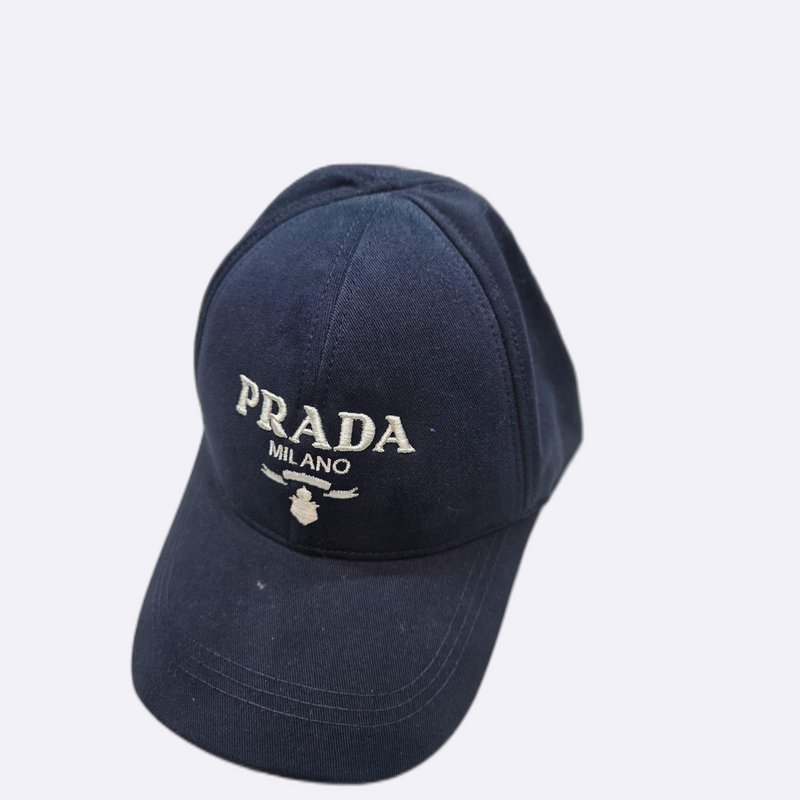 قبعة قطنية كلاسيكية تتميز بشعار برادا ميلانو الشهير بتطريز بارز في الواجهة.