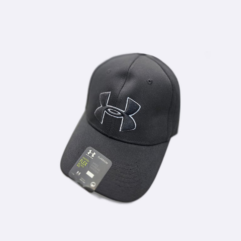 قبعة رياضية رجالية تتميز بتصميم مدمج بلونين، مع شعار أندر آرمور الكبير المطرز في المقدمة وتقنية فليكس للمقاس المرن.