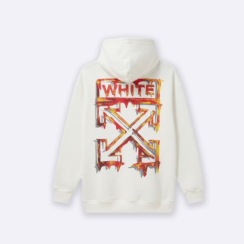 أضيف لمسة عصرية إلى خزانتك مع هودي أوف وايت الأنيق. تصميم فريد بطبعة جرافيتي مميزة، يمنحك إطلالة عصرية ومريحة في آن واحد.