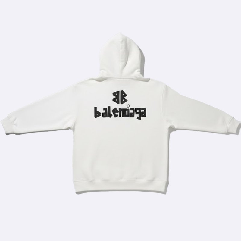 هودي بالنسياغا بتصميم عصري وشعار مميز بنقشة الكتابة على الجدران. قطعة أساسية لإطلالة كاجوال أنيقة وعصرية. أضيف لمسة من التميز إلى خزانة ملابسك.