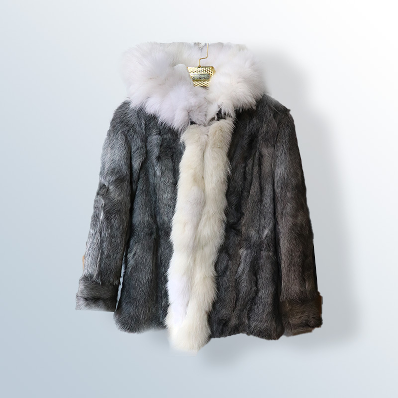 Goat fur jacket with fox hood lined