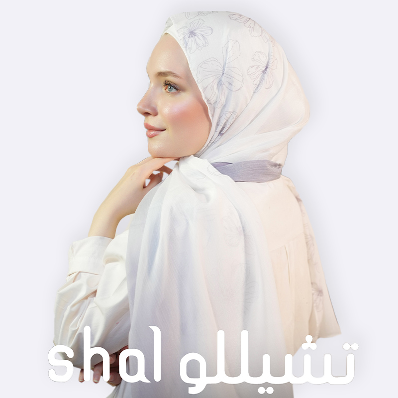 شال حجاب ناعم بنقشة خطوط زهور رقيقة وتدرجات ليلكية هادئة تمنحك إطلالة أنثوية ناعمة.