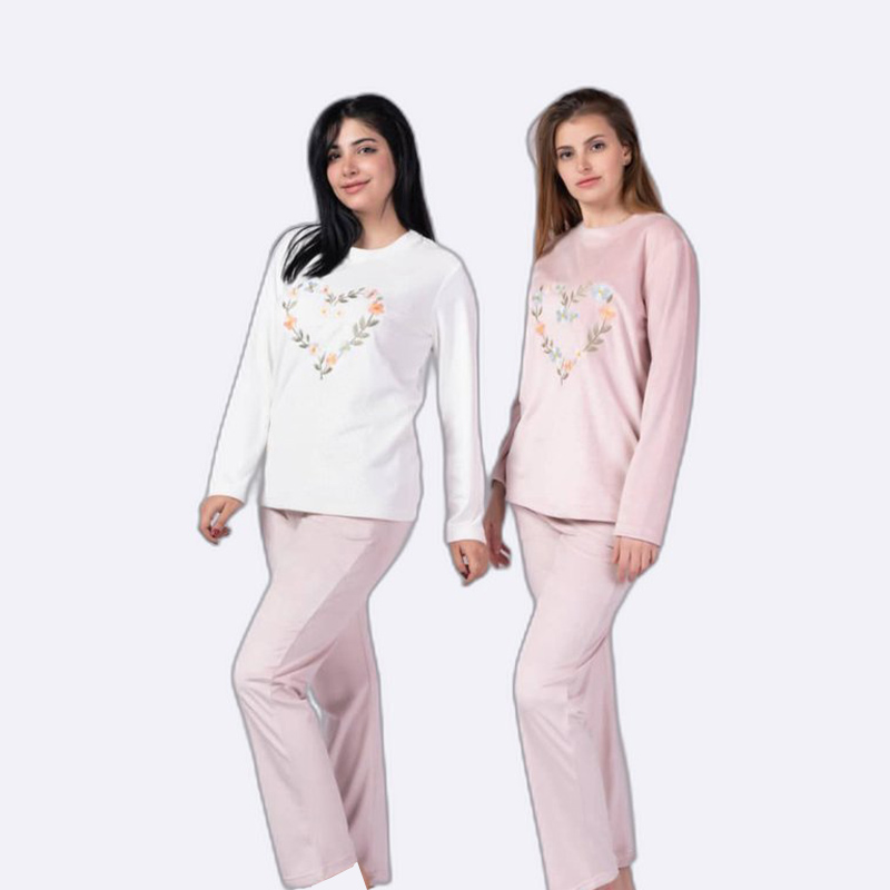 استمتعي بأحلام سعيدة مع طقم البيجامة النسائي المريح هذا. تصميم أنيق بقلب مزين بالورود يضفي لمسة من الرومانسية على لياليك.