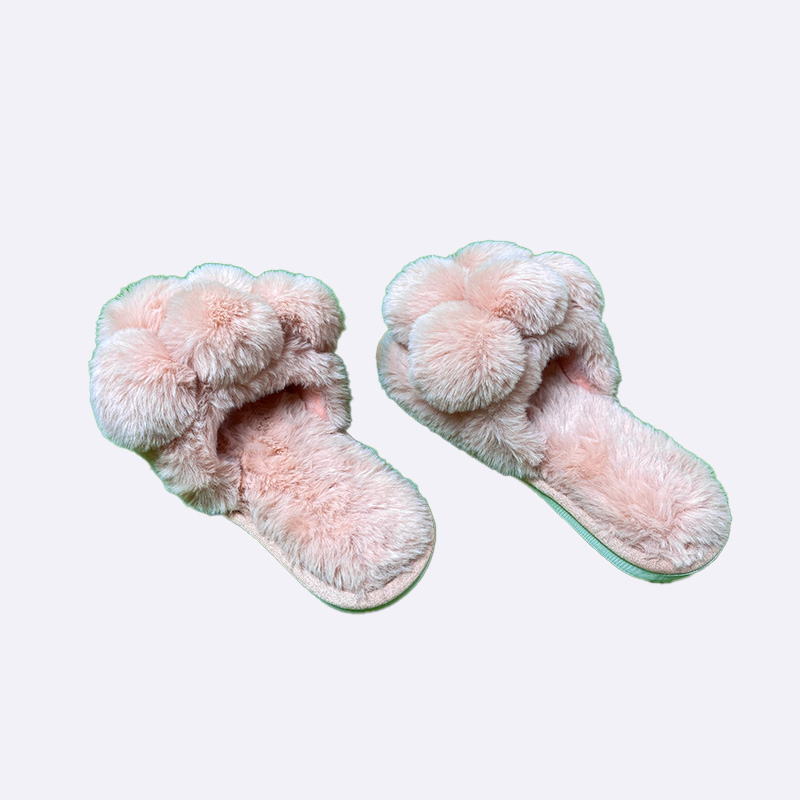 انعمي بالراحة والأناقة مع شبشب بكرات بوم بوم المنفوشة. تصميم مريح ومثالي للاسترخاء في المنزل. متوفر بألوان متعددة لتناسب ذوقك.
