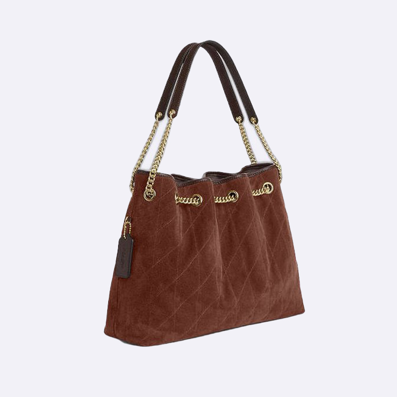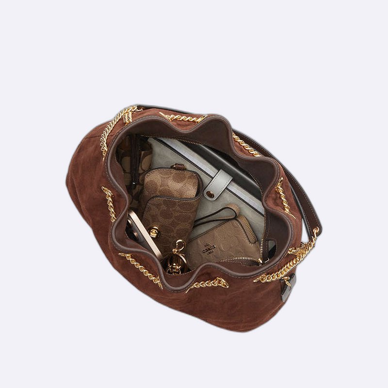 Coach Quilted Suede Bucket Bag with Chain Detail