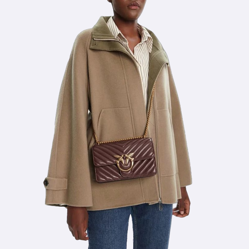 أضيفي لمسة من الأناقة إلى إطلالتك مع حقيبة بينكو لوف بيبي باف. تصميم فاخر من الجلد المبطن مع سلسلة ذهبية، مثالية للمرأة العصرية.