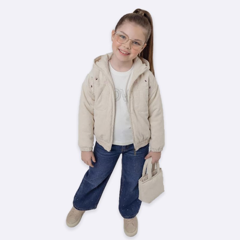 أطلقي العنان لأناقة ابنتك مع هذا الطقم الرائع! جاكيت مخملي مريح ومطرز بشكل جميل مع حقيبة يد صغيرة متناسقة، مثالي لإطلالة عصرية ومميزة.