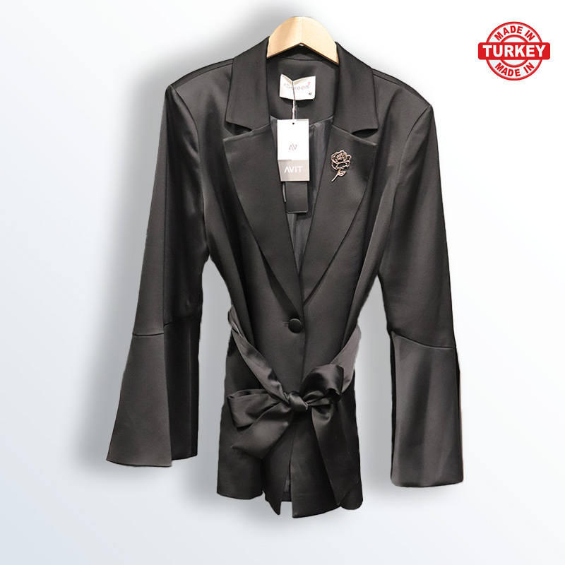 Women's Black satin jacket with Turkish rose brooch